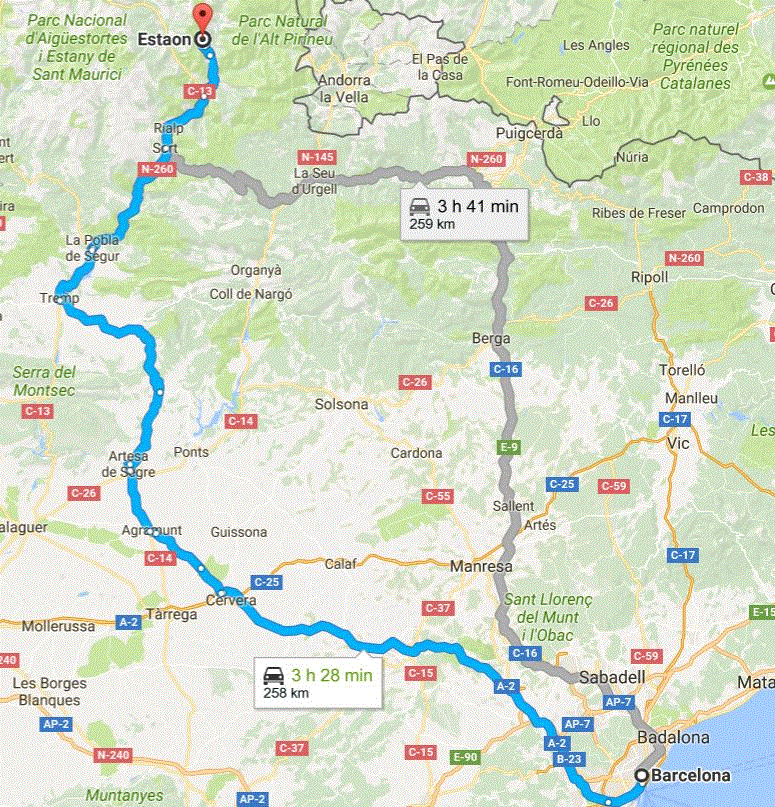 De França, Toulousse via Foix-Puigcerda agafant la E19/C16 direcció la Seu d’Urgell.